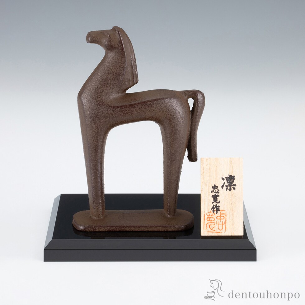 凛 鋳鉄製 プラスチック台・立札付 ( 木札名入れ有料 午 馬 十二支 2026年 開運 高岡銅器 結婚 出産 内祝い 引き出物 金婚式 誕生日プレゼント 還暦祝い )