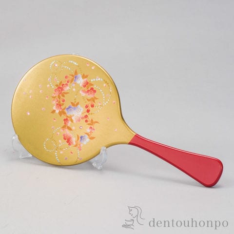手鏡 かりん スタンド付 ( 名入れ有料 ハンドミラー コンパクト お土産 記念品 アンティーク 山中漆器 結婚 出産 内祝い 引き出物 金婚式 )