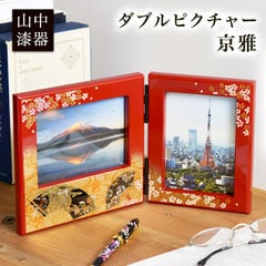 ダブルピクチャー さくら野 赤 名入れ彫刻無料 ( 写真立て フォトフレーム 写真たて お祝い 女性 山中漆器 結婚 出産 内祝い 引き出物 金婚式 )