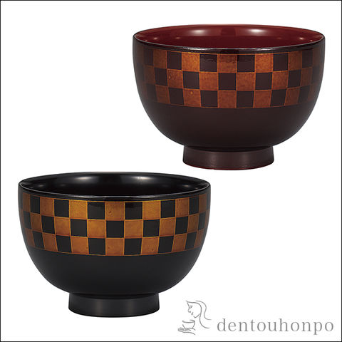 夫婦椀 白檀 市松 ( 雑煮椀 お椀 お吸い物 味噌汁 おすすめ 山中漆器 結婚 出産 内祝い 引き出物 金婚式 誕生日プレゼント 還暦祝い 古希 喜寿 米寿 )