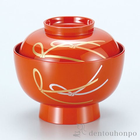 雑煮椀 結び 総洗朱 4.5号 蓋付き ( お正月 新年 雑煮椀 お椀 お吸い物 お雑煮 おすすめ 山中漆器 結婚 出産 内祝い 引き出物 金婚式 )