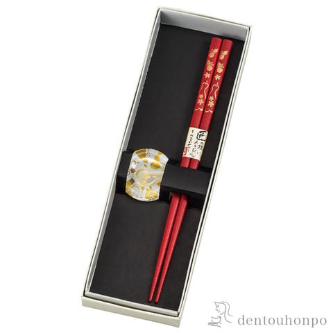 箸/箸置きセット 六瓢 赤 2種セット ( おしゃれ 食器 カトラリー シンプル おすすめ 山中漆器 結婚 出産 内祝い 引き出物 金婚式 )
