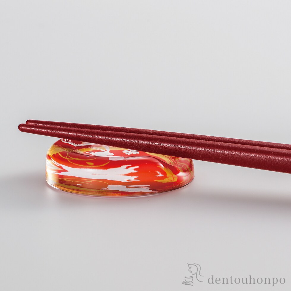 【山中漆器】 箸/箸置きセット 花うさぎ 赤 2種セット