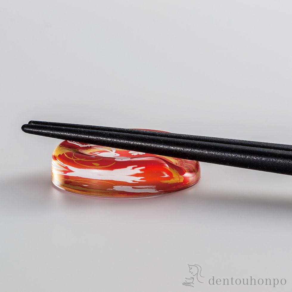 【山中漆器】 箸/箸置きセット 花うさぎ 黒 2種セット