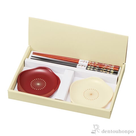 花皿・箸 梅 ペア ( おしゃれ 食器 カトラリー シンプル おすすめ 山中漆器 結婚 出産 内祝い 引き出物 金婚式 誕生日プレゼント 還暦祝い 古希 喜寿 米寿 )