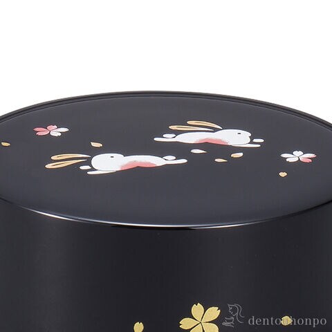 【山中漆器】 茶筒 丸うさぎ 黒 シリコンパッキン付中蓋