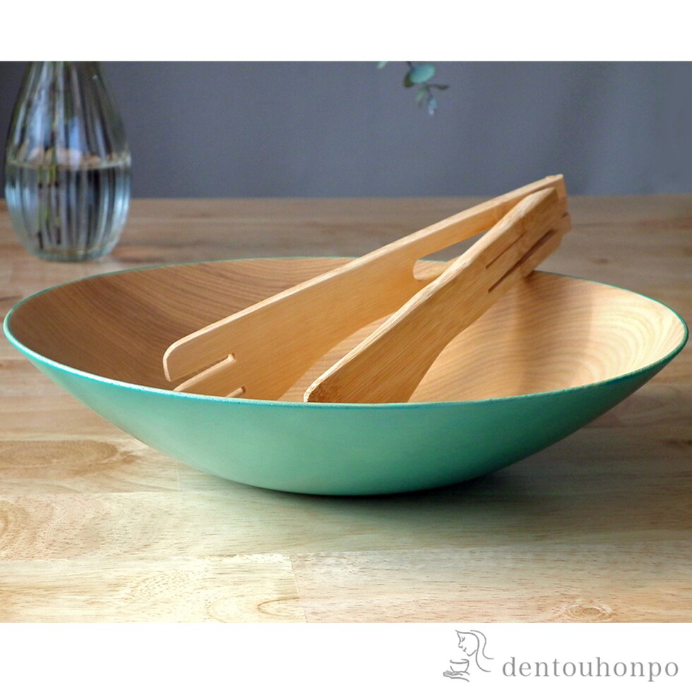 【山中漆器】 木製鉢 ひすい色 竹のトングセット