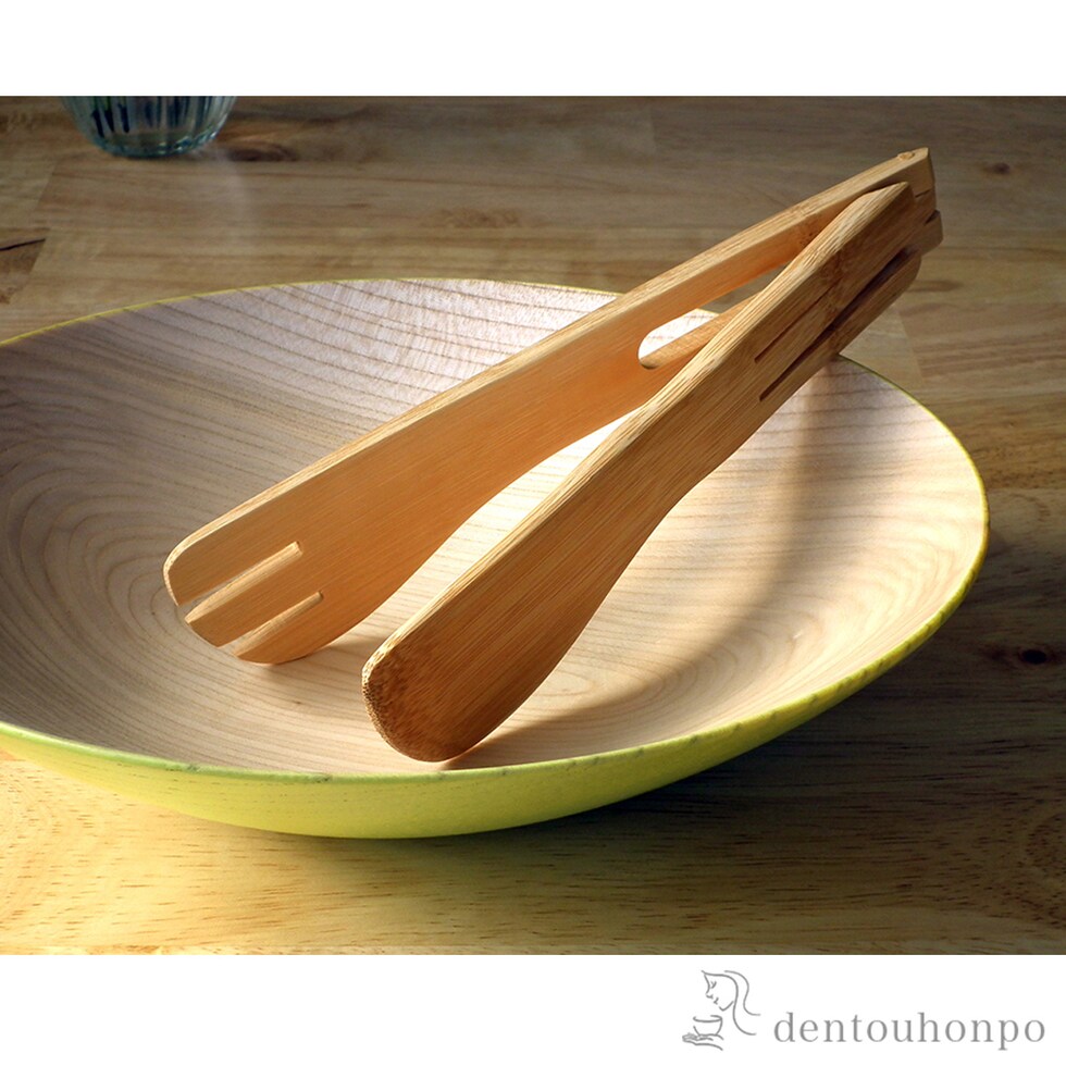 材質:[鉢] 本体:天然木、表面:ウレタン塗装 [トング] 本体:竹、表面:ウレタン塗装