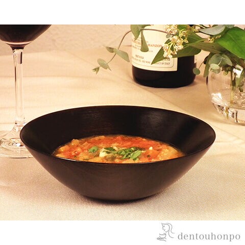 木目を活かした漆塗りで、さりげない上品さが素敵です。薄挽きなのでとても軽く、すっきりしたデザインなので煮物やサラダなどのお料理が引き立つ器です。