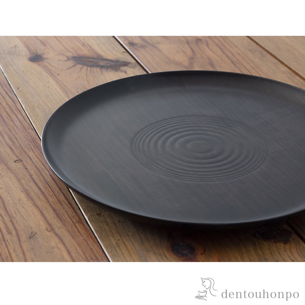 【山中漆器】 木製見付波紋盆 神代色 300mm