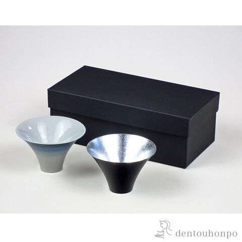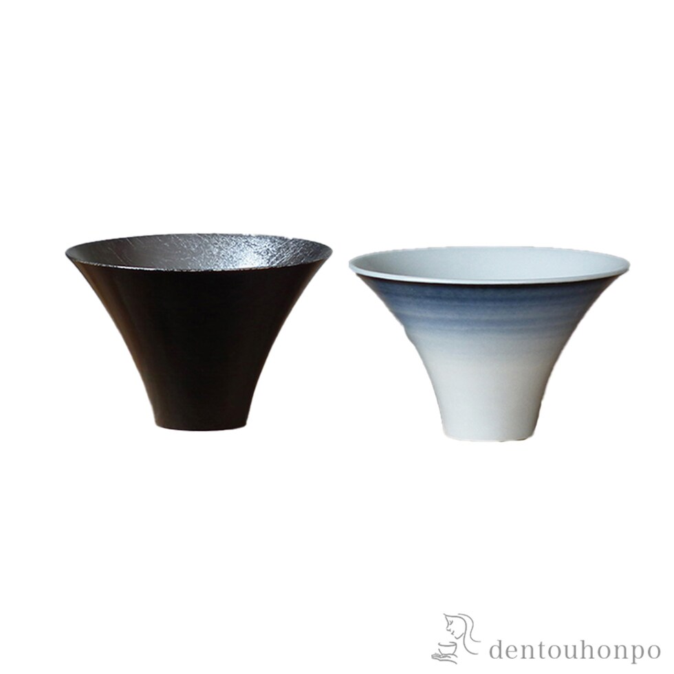 山中塗と九谷焼 ぐい呑みセット 神代内銀箔 染かすみ ( ぐいのみ 盃 酒器 猪口 日本酒 山中漆器 結婚 出産 内祝い 引き出物 金婚式 )