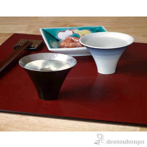 【山中漆器】 山中塗と九谷焼 ぐい呑みセット 神代内銀箔 染かすみ