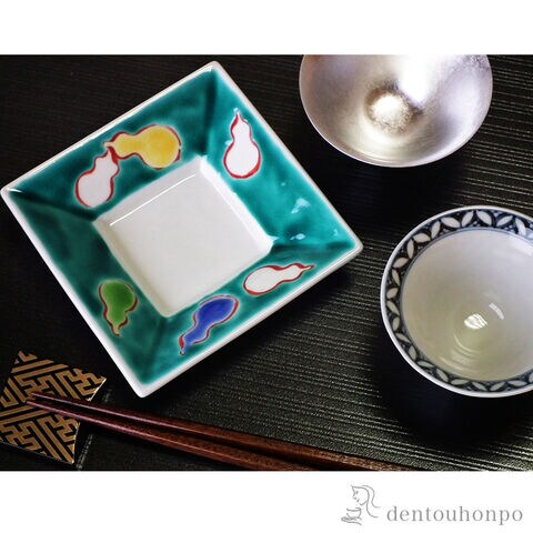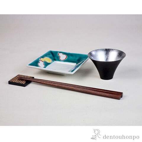 寸法:[ぐい呑] 直径:7.7cm × 高さ:5cm [箸] 長さ:23.5cm [箸置き] 縦:3.7cm × 横:3.7cm × 高さ:0.6cm [角小鉢] 縦:10.5cm × 横:10.5cm × 高さ:2.4cm