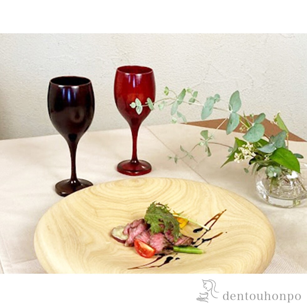 一本の木塊から継ぎ足しをせずに削り出した、山中漆器の高度な轆轤技術ならではの木製ワインカップです。漆器ならではの温かい手触りや口当たり、軽い持ち心地がお楽しみいただけます。
