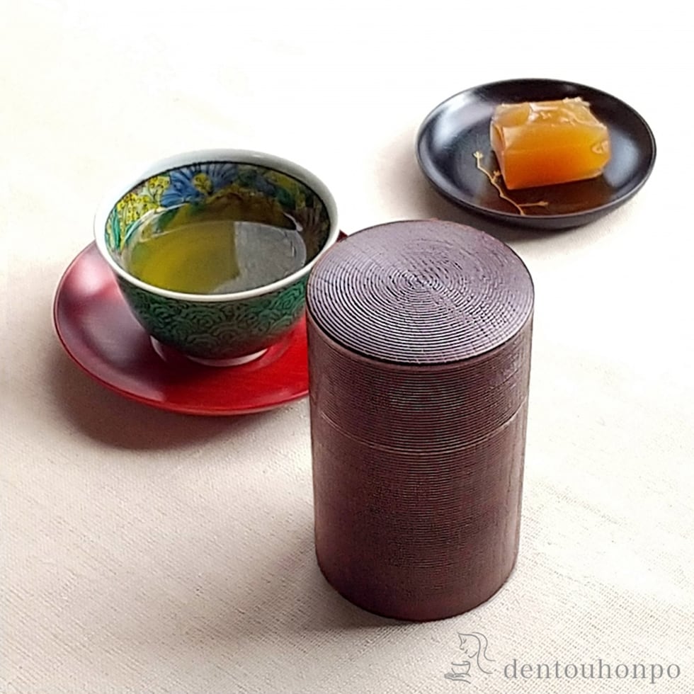 木製茶筒 中蓋付 千筋 ( 茶道 茶入れ 日本茶 中国茶 おすすめ 山中漆器 結婚 出産 内祝い 引き出物 金婚式 誕生日プレゼント 還暦祝い 古希 喜寿 米寿 )