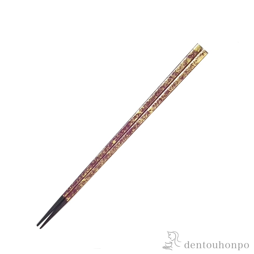 【山中漆器】 木製箸 鉄木 切箔 紫 23.5cm