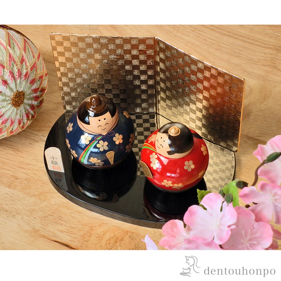 寸法:[本体(お内裏様)] 直径:6.2cm × 高さ:8cm [本体(お雛様)] 直径:5.9cm × 高さ:7.2cm [敷台] 幅:17.6cm × 奥行:10.3cm [屏風] 幅:17.5cm × 高さ:10.3cm