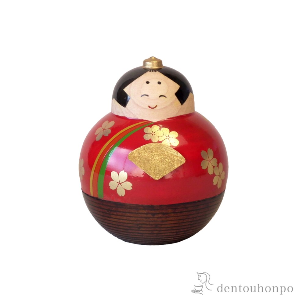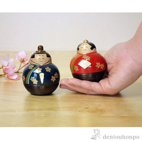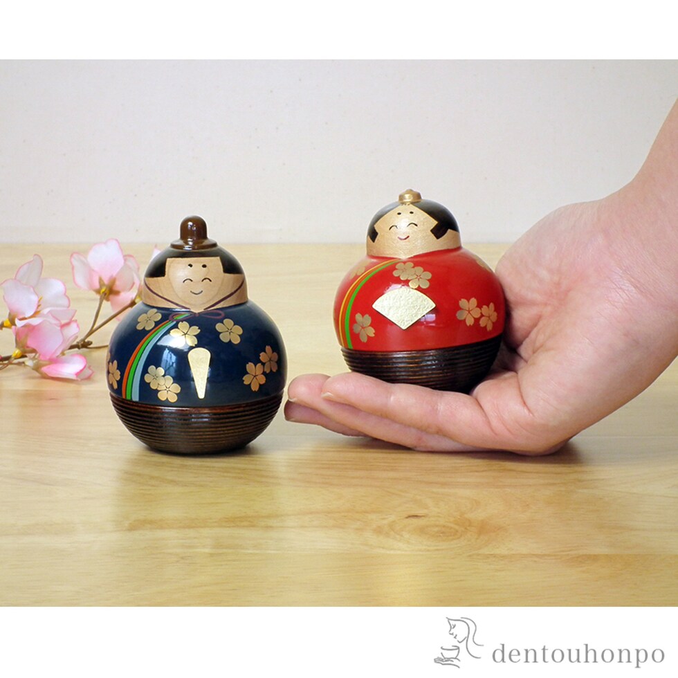 山中漆器のまあるい形のお内裏様とお雛様。蒔絵職人が手描きで丁寧に仕上げました。リビングや玄関などに省スペースで飾ることが出来ます。