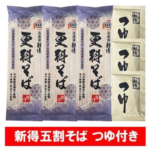 新得 五割そば 送料無料 五割蕎麦 新得そば 乾麺 干しそば 5割蕎麦 新得蕎麦 更科そば 200g×3束 / 新得 めんつゆ 3袋 しんとく そば 五割 蕎麦 麺類