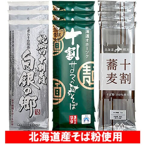 十割そば 送料無料 十割蕎麦 そば 食べ比べ 幌加内 十割そば 白銀の郷 3束 / サロマ 十割蕎麦 3束 / ほろかない 十割 蕎麦 3束 北海道のそば 干しそば 3種 計9袋 そば 10割 蕎麦 麺類 箱入り 熨斗対応 ギフト プレゼント