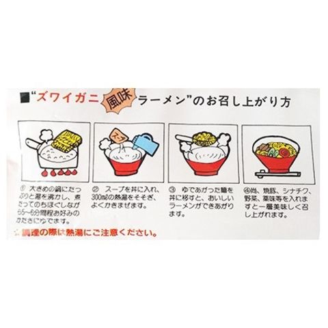 保存方法:ずわいがにラーメン は直射日光、高温、多湿をさけ常温で保存
