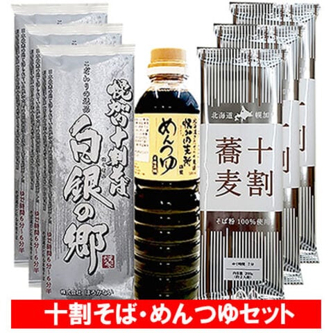 十割そば 乾麺 めんつゆ セット 送料無料 十割蕎麦 ギフト 幌加内そば 白銀の郷 3束 / 幌加内蕎麦 無塩 食塩 ゼロ 十割そば 3束 / ほろかない めんつゆ 1本 そば 十割 蕎麦 10割 麺類 調味料 箱入り 熨斗対応 ギフト プレゼント