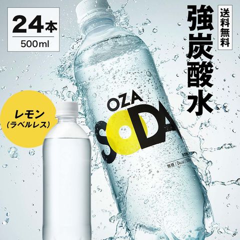 【レモンラベルレス】 炭酸水 500ml 24本 強炭酸 炭酸 無糖 OZA SODA プレーン レモン ピンクグレープフルーツ ライム 1ケース 割り材 箱買い ライフドリンクカンパニー LDC ZAO SODA