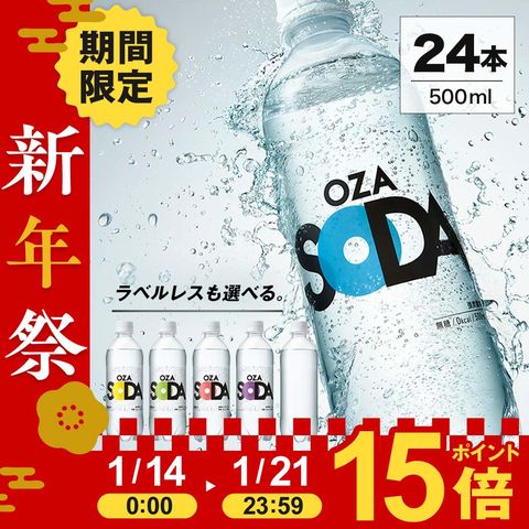 【プレーン】炭酸水OZA SODA 500ml 24本 強炭酸 炭酸 無糖 プレーン レモン ピンクグレープフルーツ ライム ライチ 1ケース 割り材 箱買い ライフドリンクカンパニー LDC