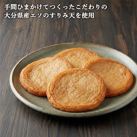 手間ひまかけてつくったこだわりの大分県産エソのすりみ天をさらに手作業で丁寧に切れ目を入れて、かつお節、昆布、干し椎茸(県産原木)、いりこ(蒲江産)で丁寧に出汁をとり、炊き上げて酢飯をぎゅっと詰めています。