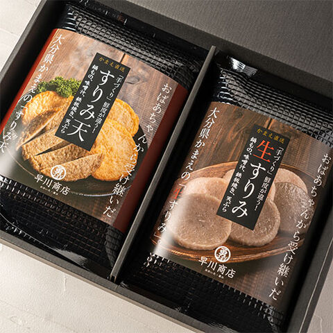 蒲江の逸品 すりみ天(アジ天3枚・エソ天3枚)&生すりみ(アジ3枚・エソ3枚)セット 化粧箱入り 大分県産えそ&鯵使用 てんぷら すり身天 かまぼこ おつまみ おかず 弁当 惣菜 九州 冷凍便 早川商店【送料込】