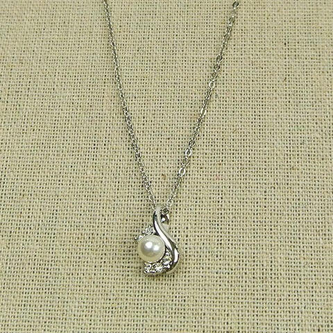 シンプルなパールペンダント ■1粒パール&透明石のペンダント