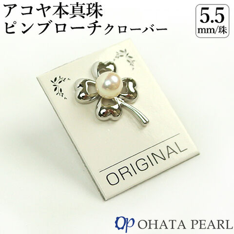 国産アコヤ真珠 5.5ミリ珠 ピンブローチ クローバー(サイズ約13mm×18mm) 普段使いにもフォーマルにもオススメ 本真珠 ジュエリー オーハタパール【ギフト可】【送料無料】