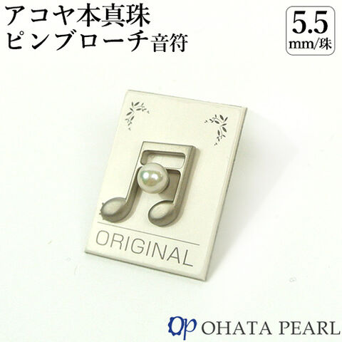 国産アコヤ真珠 5.5ミリ珠 ピンブローチ 音符(サイズ約14mm×15mm) 普段使いにもフォーマルにもオススメ 本真珠 ジュエリー オーハタパール【ギフト可】【送料無料】