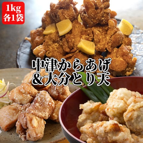 本場の中津からあげ&大分とり天を食卓へ! 国産鶏肉100%使用 骨なしもも肉・むね肉唐揚げ&とり天 たっぷり各1kgセット から揚げ 鶏の天ぷら 綾鶏 おかず お弁当 お惣菜 油調理 冷凍便 産地直送 NorthSouth【送料込】