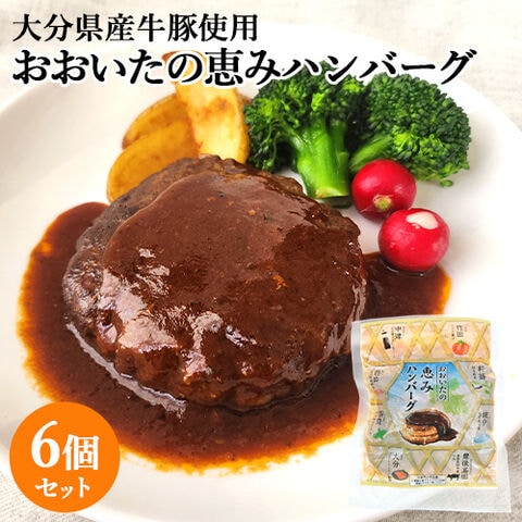 大分県産素材大集合 おおいたの恵みハンバーグ 160g×6個セット 大分県産牛 大分県産豚 なずなの塩 大分県産野菜 冷凍レトルト レンジアップ 湯煎 ミートクレスト【送料込】