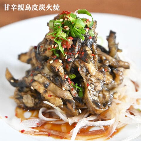 甘辛親鳥皮炭火焼 100g×2 親鳥もも炭火焼 100g×2 牛ホルモン炭火焼 110g×2 凍手羽 150g カンジャンセウ 2尾 チャンジャ 50g(韓国のり3枚付き) 砂肝アヒージョ 170g(バゲット2切れ付き) |