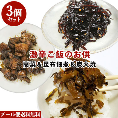 激辛ご飯のお供 高菜&昆布佃煮&ピリ辛炭火焼 3種セット 辛い物好きに 唐辛子・ハバネロ使用 HellCompany ヘルカンパニー【ゆうパケット送料込】