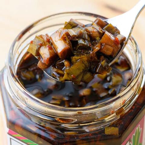 | 原材料名 | にら(大分市産)、漬け原材料(醤油加工品(醤油、砂糖、本みりん、食塩、昆布エキス、椎茸エキス、酵母エキス)(小麦・大豆を含む)(国内製造)、唐辛子) |
