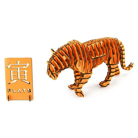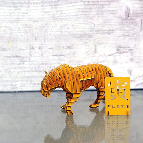 FLATS 4D アートパズル 寅段 とらだん(Tiger157_b-yellow) シート3枚/78パーツ ブライトイエロー ペーパークラフト 強化ダンボール 国東時間 ゆうパケット送料込