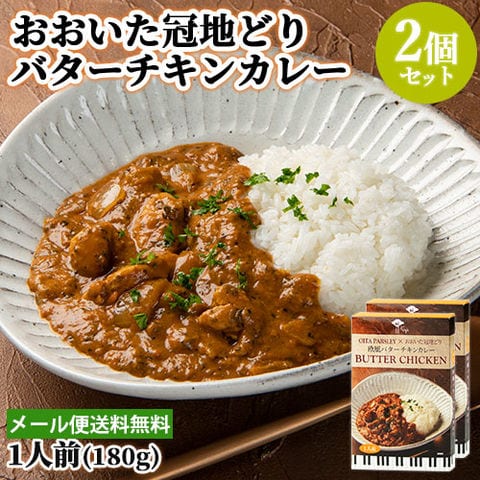 大分県産パセリ&おおいた冠地どり 欧風バターチキンカレー 1人前(180g)×2個セット レトルトカレー アレンジ料理にも アダージョ Adagio【ゆうパケット送料込】