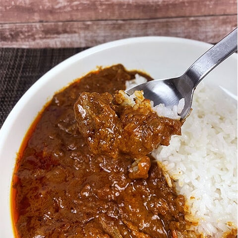 | 原材料 | 牛スープ(牛肉(国産))、牛すじ肉、トマト・ピューレづけ、オニオンソテー、ヨーグルト、バター、おろし生姜、小麦粉、コリアンダー、植物油脂、乾燥コンソメスープ、にんにく、食塩、オールスパイス、クミン、ターメリック、ガラムマサラ、唐辛子/調味料(アミノ酸)、カラメル色素、酸味料、(一部に小麦・乳成分・牛肉・大豆・鶏肉を含む) |