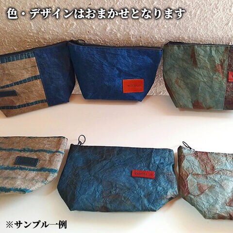 手漉き和紙でつくった 大分和紙ポーチ(渋めデザイン) ジッパー付き 縦130mm×横200mm×マチ70mm 小物入れ 手造り一点物 デザインおまかせ 日本製 和紙場地【送料込】