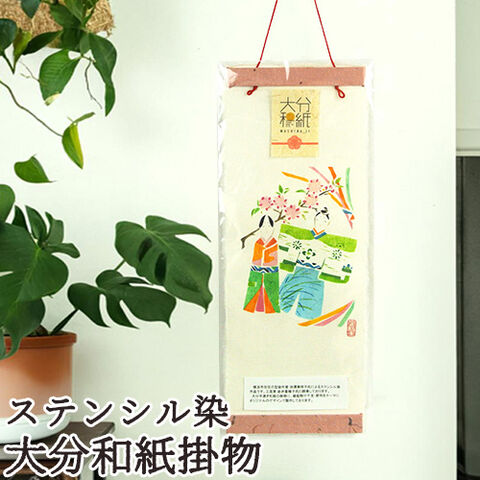 手漉き和紙でつくった 掛物 型染(節句 ひな祭りA) 縦310mm×横120mm 壁掛け インテリア 雑貨 タペストリー ステンシル染 日本製 和紙場地【送料込】
