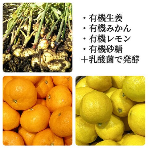 | 原材料名 | 有機生姜(国産)、有機砂糖、有機れもん、有機みかん、乳酸菌/炭酸 |