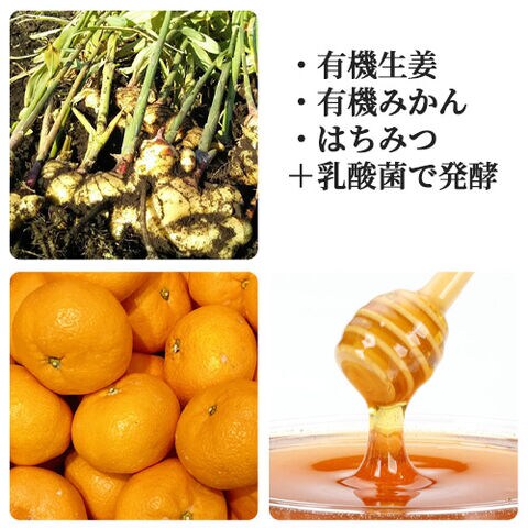 | 原材料名 | 有機生姜(国産)、はちみつ、有機みかん、乳酸菌/炭酸 |