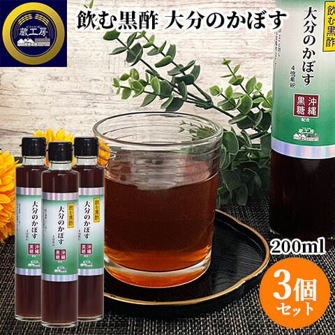 大分県産かぼすと沖縄波照間の黒糖を使用 飲む黒酢 大分のかぼす 200ml×3個セット 4倍希釈 お酢ドリンク 飲む酢 ビネガードリンク 黒酢ドリンク 酢豚 蔵工房 二反田醤油店 【送料込】
