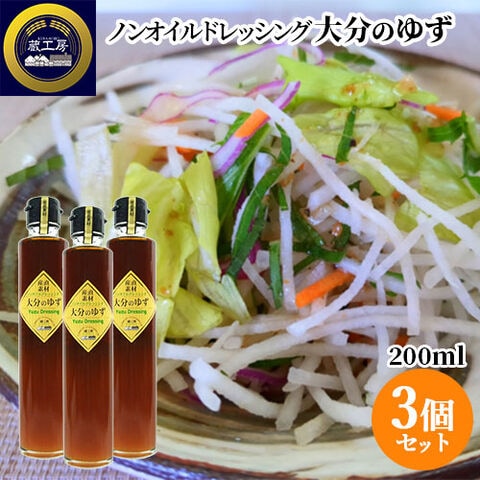 九州産のゆずを使用 産直素材 ノンオイルドレッシング 大分のゆず 200ml×3個セット 国産 ドレッシングタイプ調味料 しょうゆ お土産 蔵工房 二反田醤油店 【送料込】