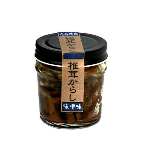 | 原材料 | 椎茸(大分県産)、砂糖、醤油(原材料の一部に大豆小麦を含む)、味噌、和辛子、料理酒、みりん風調味料(水飴、米、醸造調味料、醸造酢)、醸造酢/調味料(アミノ酸等)、甘味料(ステビア、甘草)、酸味料、着色料(カラメル色素、ウコン)、増粘剤(キサンタン) |