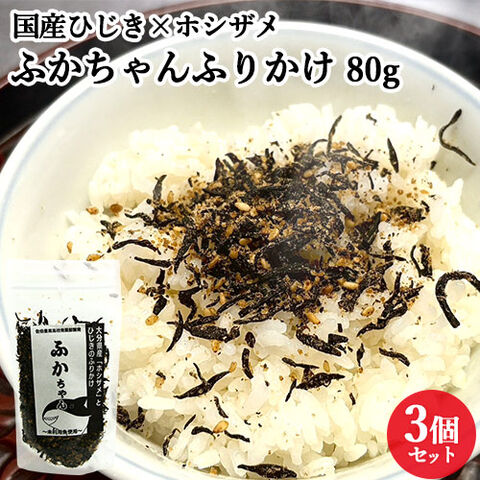 未利用魚を活用したソフトタイプふりかけ ふかちゃんふりかけ 80g×3個セット 国産ひじき&ホシザメ使用 ほぐし身 ヒジキ 海藻 ご飯の御供 おにぎり お弁当 保存料不使用 SDGs 山忠【送料込】