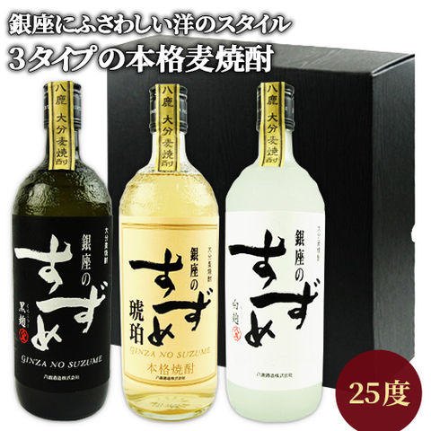 芳醇な旨味溢れる大分県産麦焼酎 3タイプの美味しさが楽しめる飲み比べセット 銀座のすずめ 黒麹&琥珀&白麹 各720ml 25度 常圧蒸留製造 焼酎初心者から本格派まで 八鹿酒造【送料込】